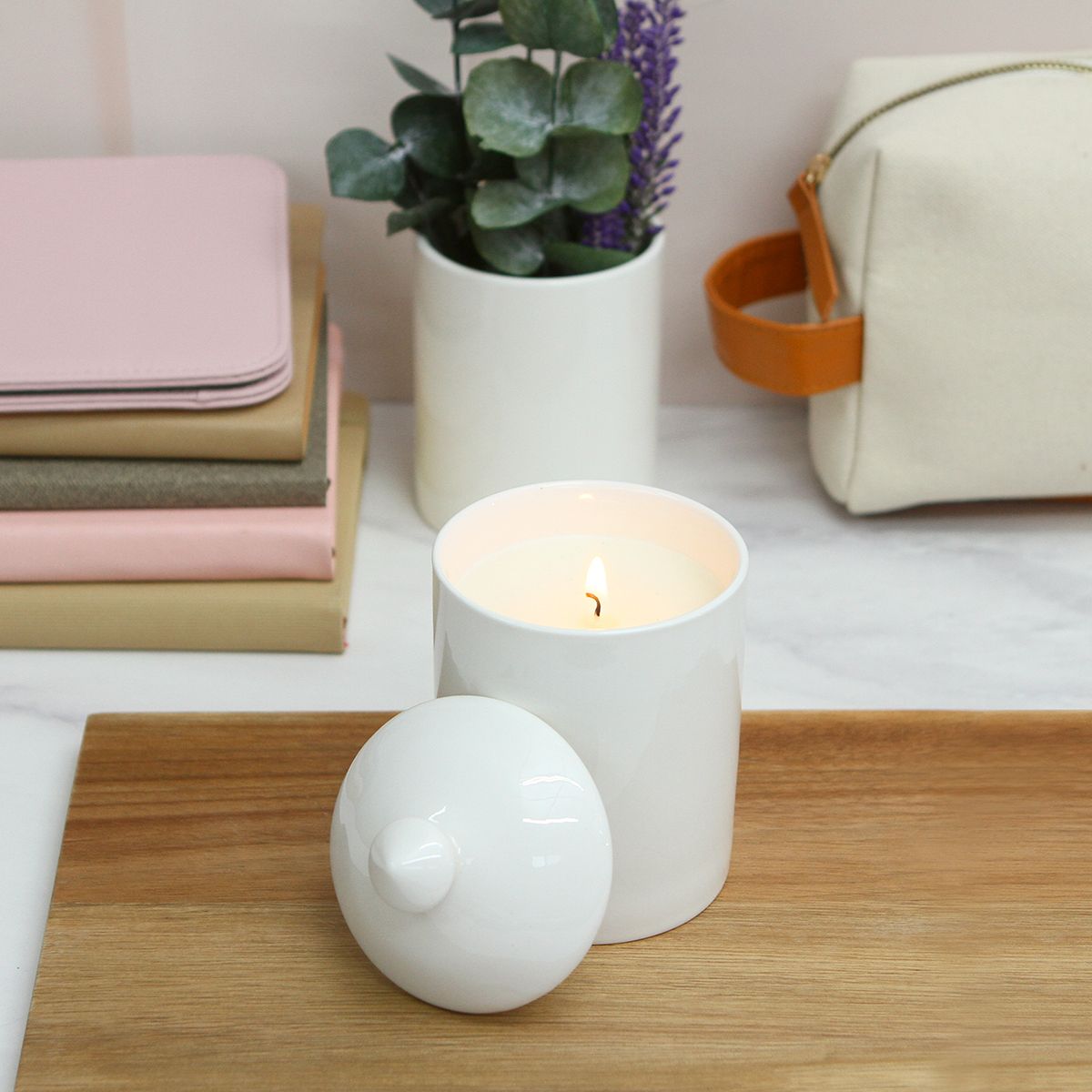 Vela aromática fabricada en cera de soya, concentración del 5 % de esencia de limón. La cera de soya es conocida por su capacidad de quemarse más lentamente y de manera más uniforme en comparación con otras ceras, lo que garantiza que la vela tenga una mayor duración y un rendimiento óptimo de su fragancia. Su contenedor de cerámica con diseño sofisticado y su tapa del mismo material hace que sea ideal tanto para el uso en hogares como en ambientes profesionales.