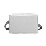 Hielera semirrígida plegable con interior impermeable, doble cierre, mallas laterales y correa ajustable.